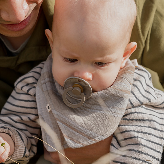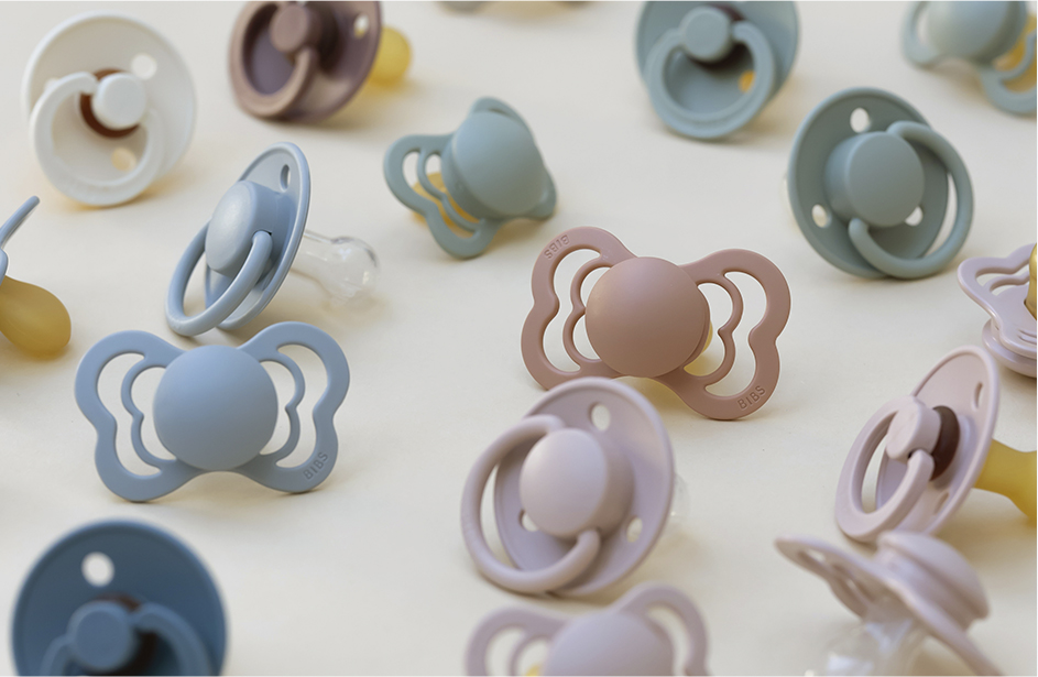 Chupetes de alta calidad, diseño danés y variedad de colores. Elige entre sus tetinas redonda, simétrica o anatómica y materiales de silicona o látex de caucho natural.