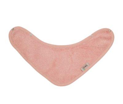 Bib made from organic bamboo fiber with a very soft texture and two snap adjustments at the neck allowing it to be used on babies as well as slightly older children.