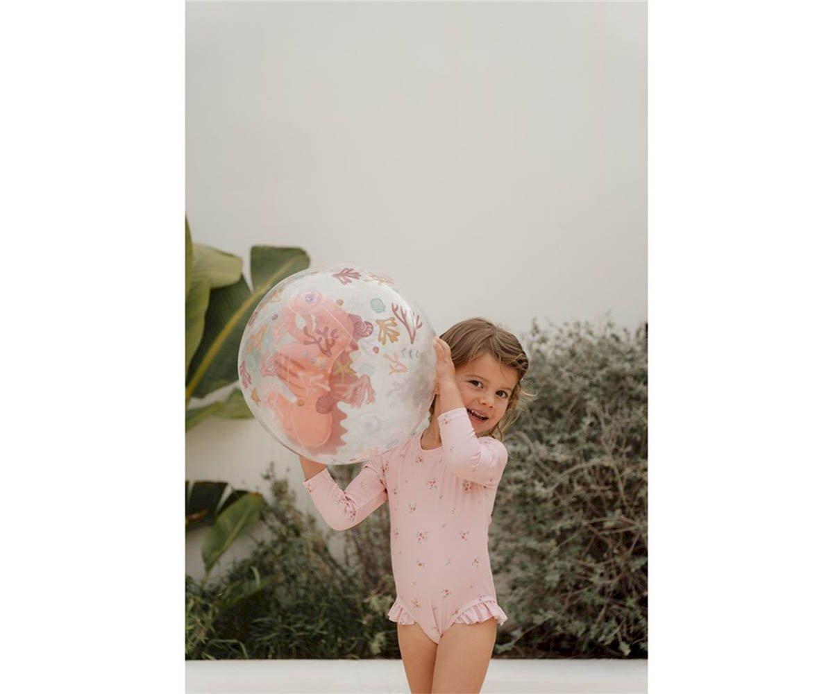 Su diseño 3D transparente muestra un caballito de mar en su interior de la colección Ocean Dreams Pink de Little Dutch, ¡robará todas las miradas! Fácil de inflar y desinflar, es el accesorio perfecto para tus aventuras bajo el sol.