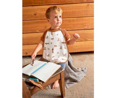 Es impermeable, lo que le hace ideal no sólo para comer sino también para realizar manualidades en casa o en la guardería.