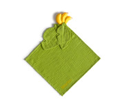 Este doudou ofrece una textura agradable y reconfortante para la piel del bebé, mientras que el elemento de caucho natural permite morder y explorar durante la dentición. Su diseño inspirado en frutas y verduras icónicas de la marca aporta un toque divertido y educativo.