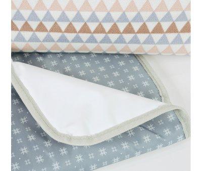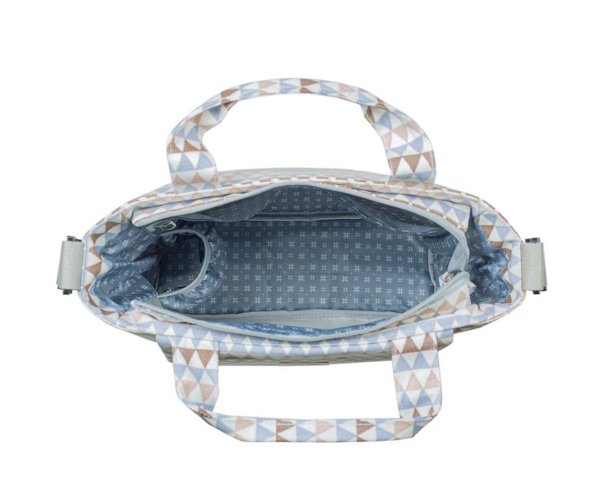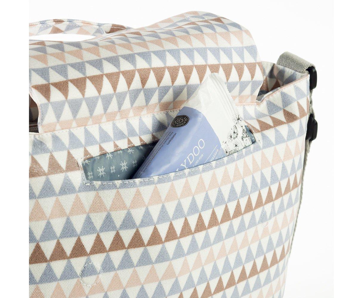 Bolso cambiador Oliver con estampado geométrico para silla de paseo que incluye cambiador para bebe. Bolsa canastilla muy ligera, resistente y de gran capacidad para llevar todo lo necesario para el paseo del bebe. Tiene multiples bolsillos para poder tener todo ordenado y a mano.