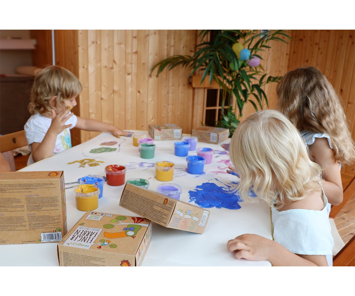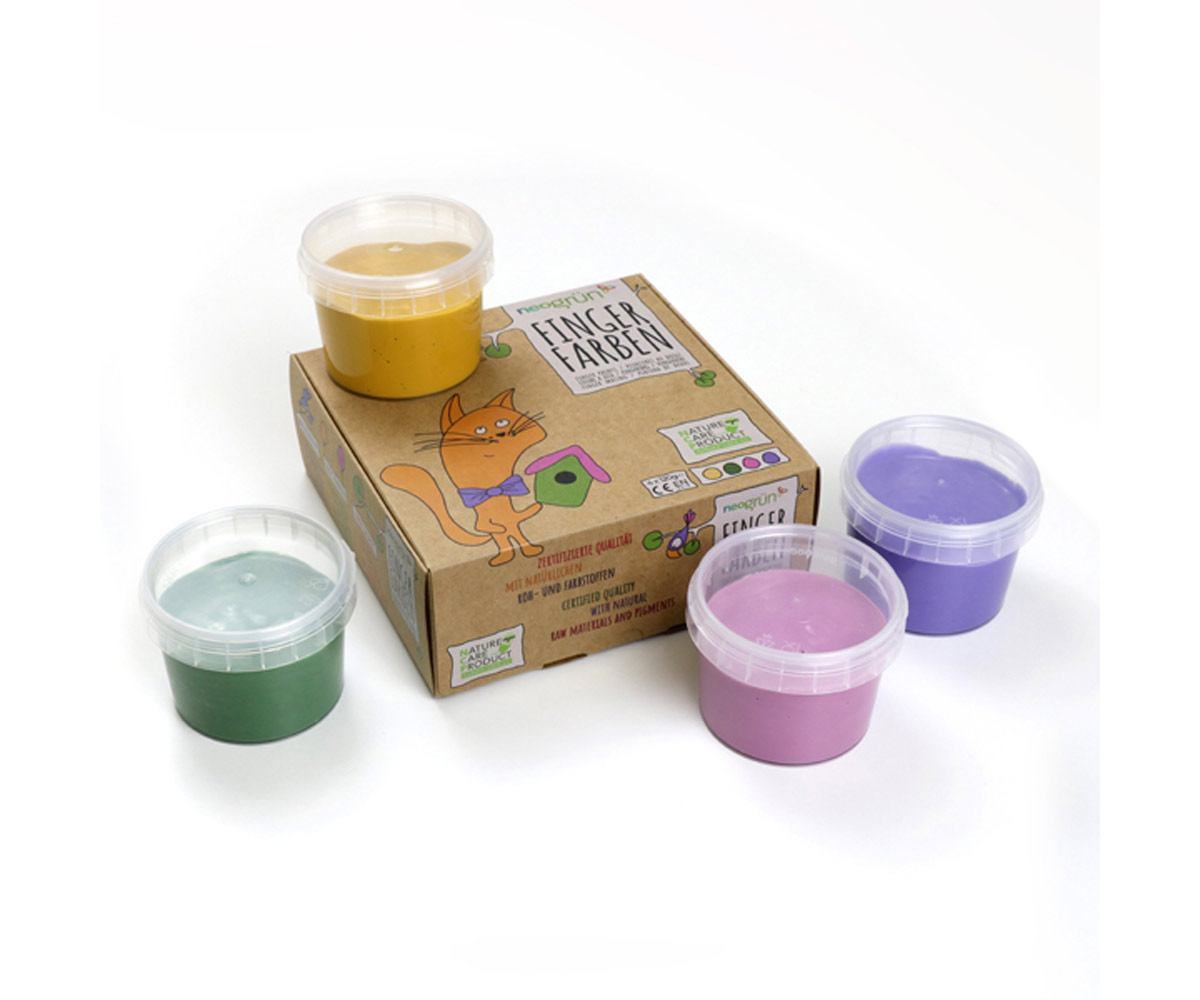 Los niños descubren su entorno utilizando todo su cuerpo. Para que sus descubrimientos sean seguros y se conviertan en una experiencia memorable, aquí tenemos la pintura de dedos Neogrün, creada a partir de ingredientes naturales y respetuosos con el medio ambiente y utilizando, exclusivamente, pigmentos refinado vegetales y minerales.
