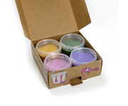 Contiene 4 botes de distintos colores con capacidad de 120g cada uno