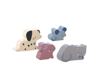 Contenido: 1 casita de madera con formas + 4 animales: perro, conejo, gato, ratón