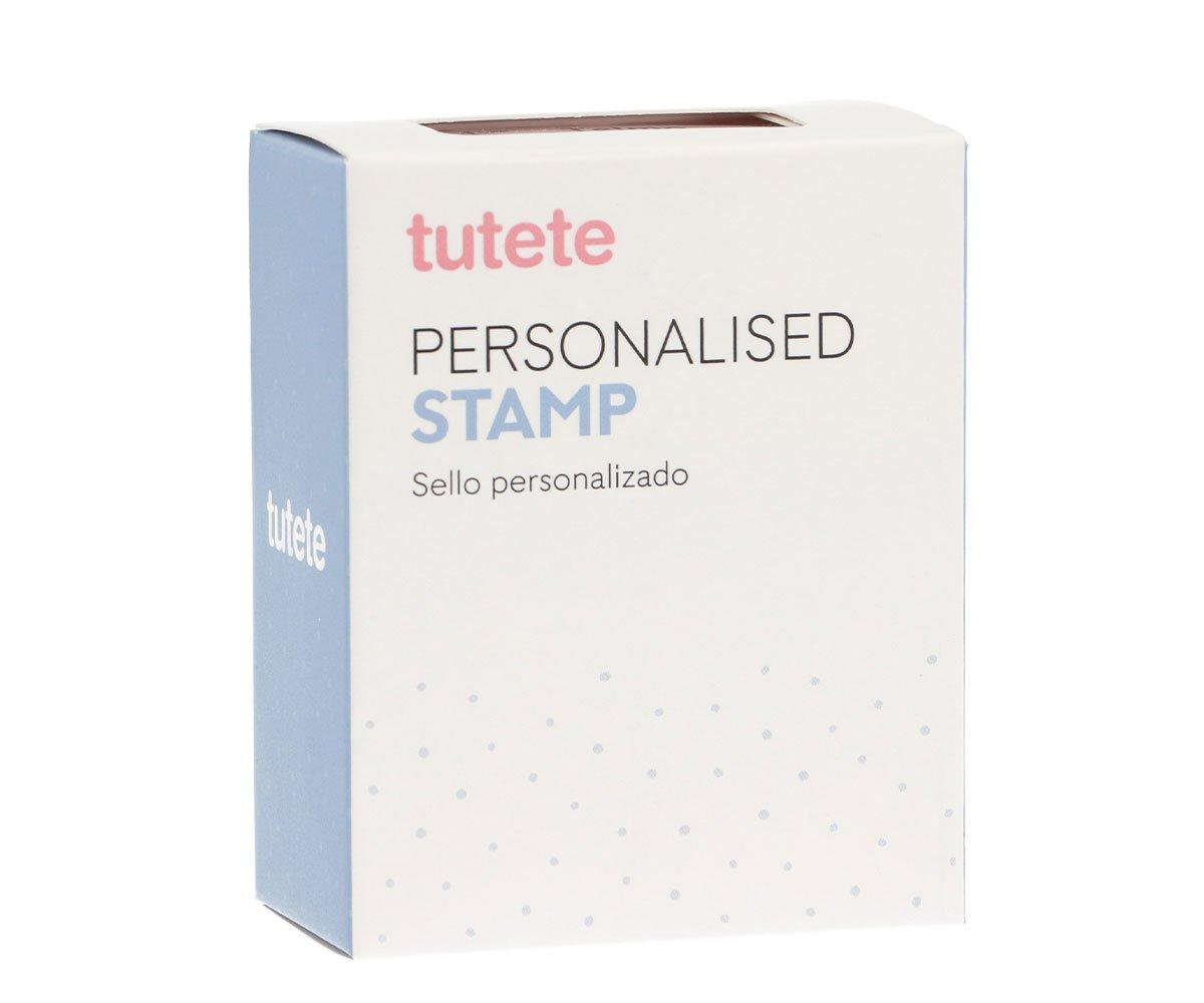 Sello personalizado con el nombre de tu hija o hijo. Con un solo click marcas directamente sobre la ropa o papel. Sin planchar ni coser.