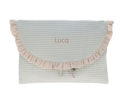 Otro modelo de bolsa para llevar la muda de recambio dentro del bolso del carro bebé. Con una solapa y cierre en lazo, lo tendrás todo ordenador dentro de tu bolso cambiador.