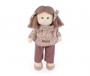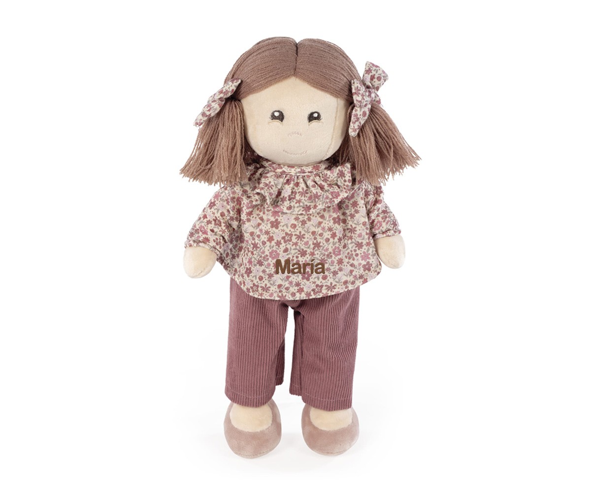 Juega con la bonita muñeca de trapo Bibi de Pasito a pasito. Con sus bonitas coletas y su conjunto de la colección Cherry Flores, llévala de paseo y a conjunto con sus accesorios.