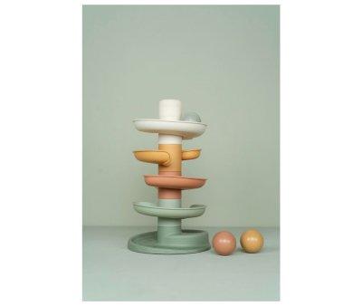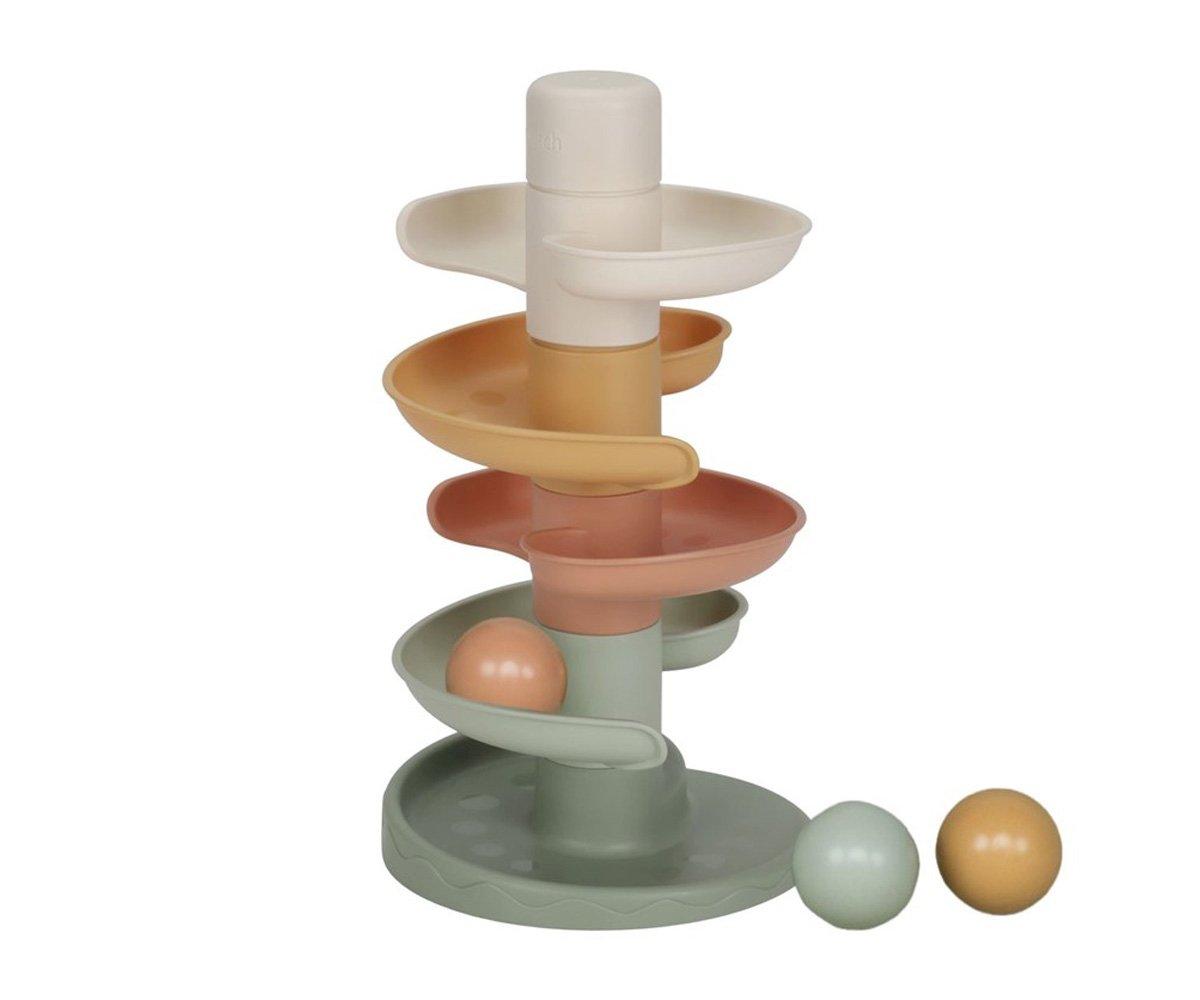 La torre circuito de Little Dutch contiene tres bolas fáciles de agarrar en diferentes colores suaves que hacen un pequeño sonido cuando se mueven. Ayuda a mejorar la coordinación ojo-mano asegurando que sea divertido y educativo.