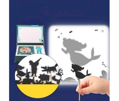 ¡Convierte tu cuarto en un teatro! Apaga las luces, enciende la linterna y proyecta las imágenes del cuento que elijas sobre la pared o en el interior de la tapa de la caja. Añádele un toque personal incluyendo las sombras de los personajes que vienen incluídas dentro de la caja y conviértete en director de escena.