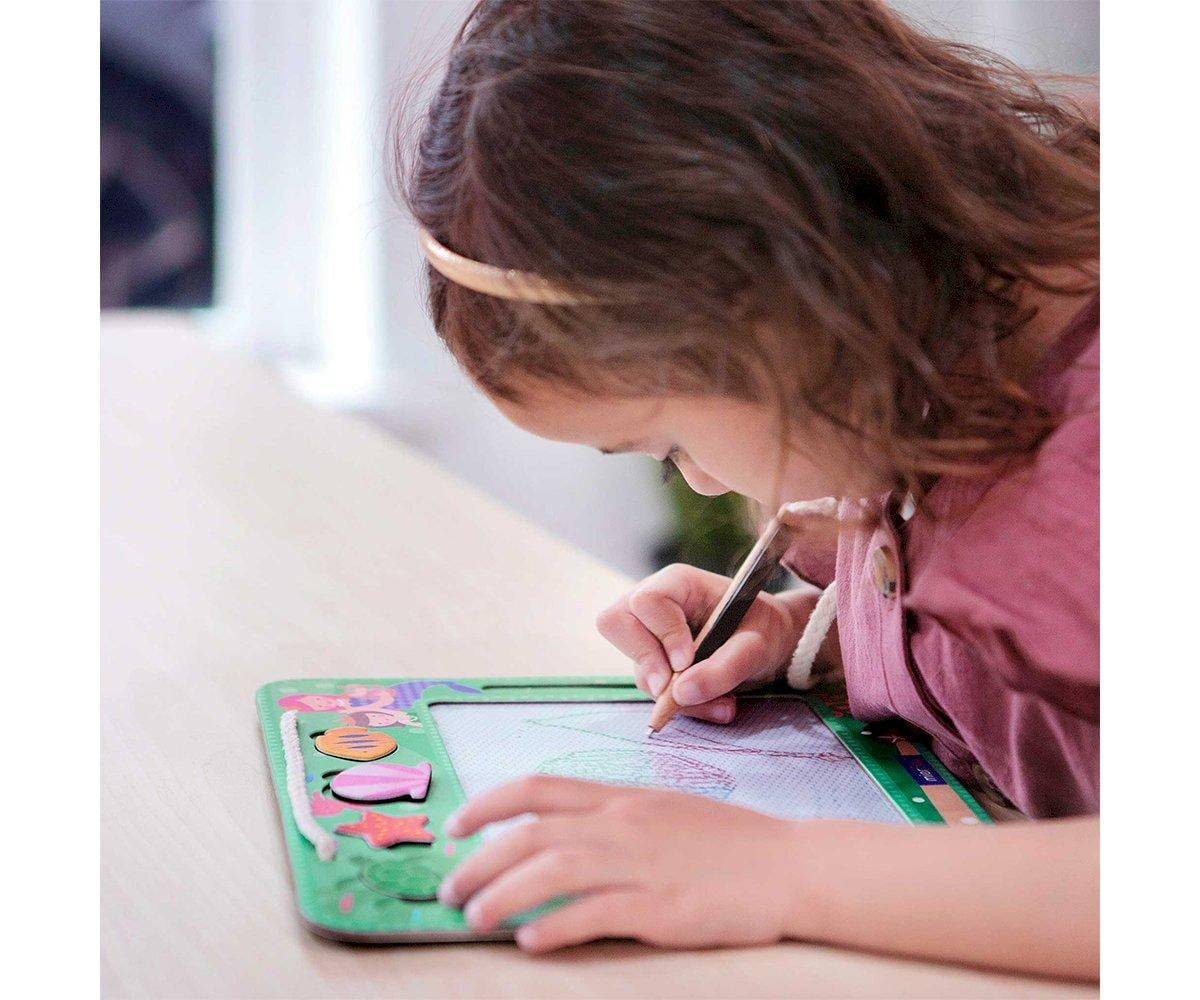 Esta preciosa pizarra magnética respetuosa con el medio ambiente dará horas de juego. ¡El peque podrá garabatear, escribir o dibujar con el lápiz especial que lleva adjunto, y usar cualquiera de sus sellos temáticos para crear obras de arte!