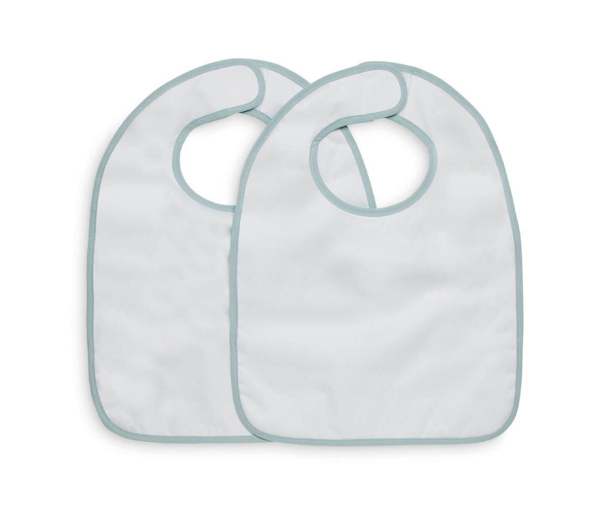 Lot de 2 bavoirs avec poche à rabat sur le devant en polyester qui s'ajustent confortablement autour du cou grâce à une fermeture velcro au dos.