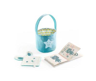 - Comprend : 1 sac, 1 livre en tissu, 1 jouet en peluche