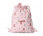 Sacca zaino leggera, in tessuto stampato con i disegni esclusivi della collezione tessile Little Red Scuola Tutete 2025.