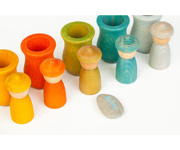 Grapat produce giochi in legno colorati con tinte naturali, affini alla pedagogia Waldorf, senza istruzioni per l'uso per lasciare liberi genitori e bebè nella sperimentazione.