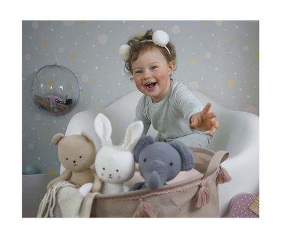 Este coelho se tornará um brinquedo indispensável para os mais pequenos da casa. Eles vão querer levá-lo para passear ou dormir com ele.
